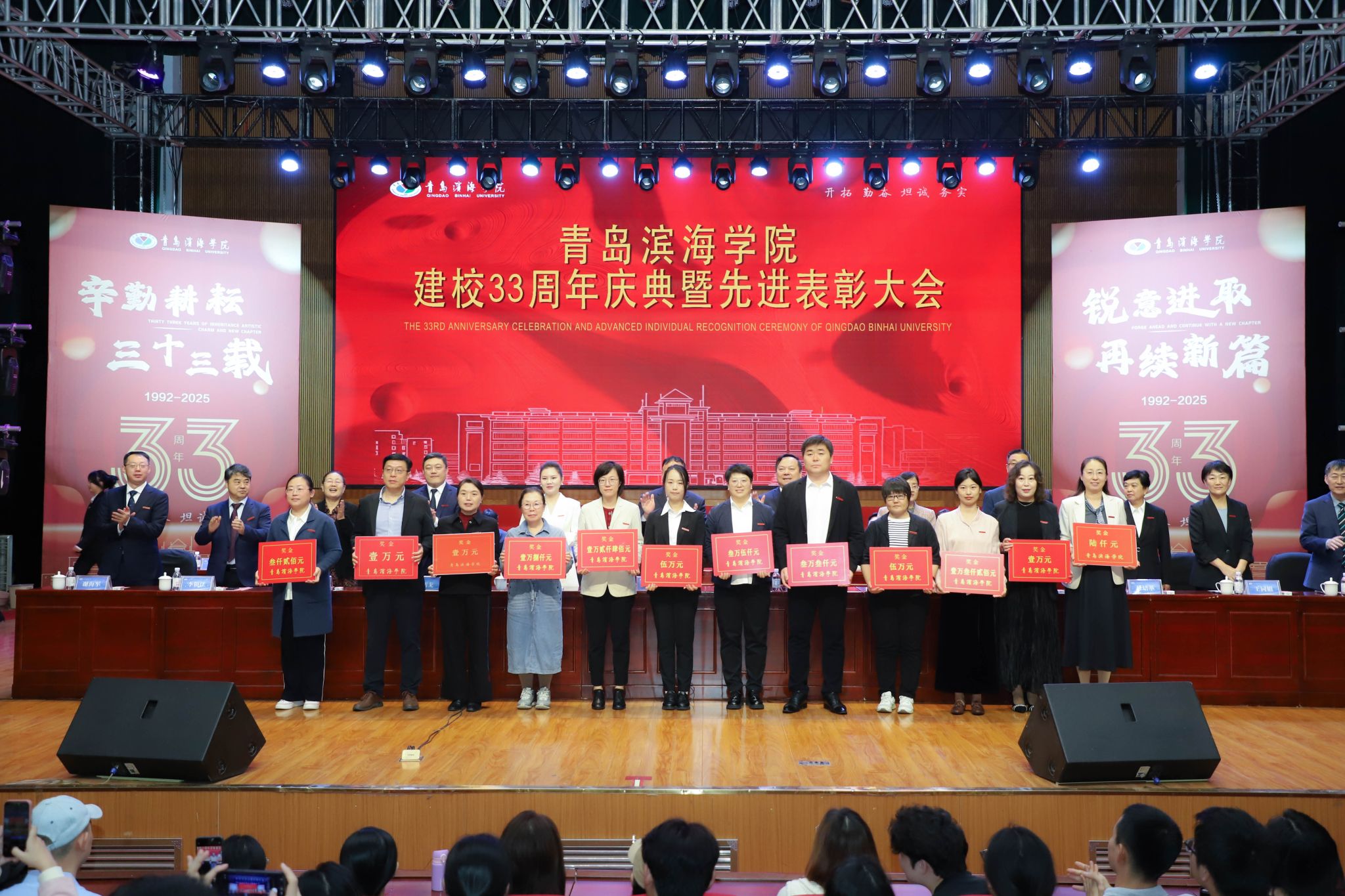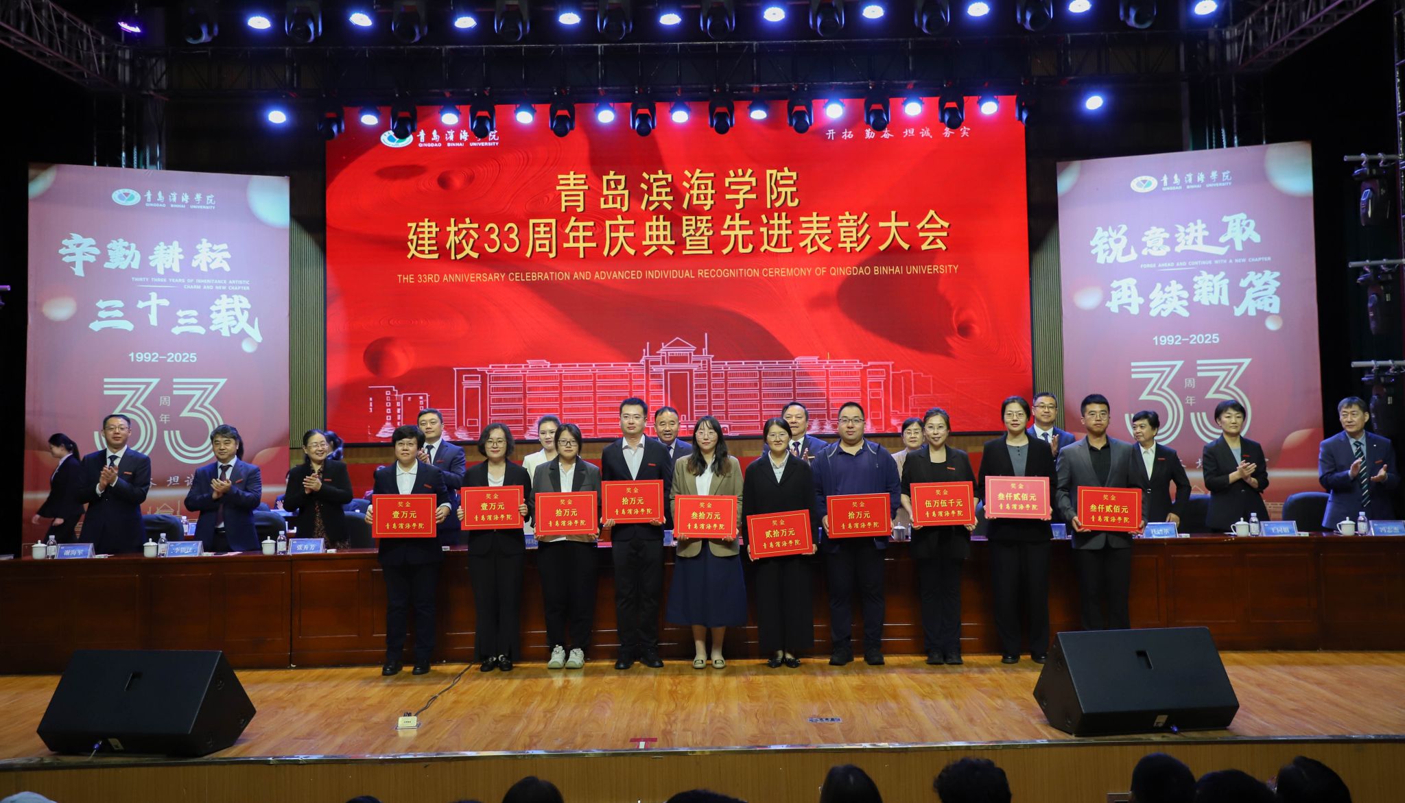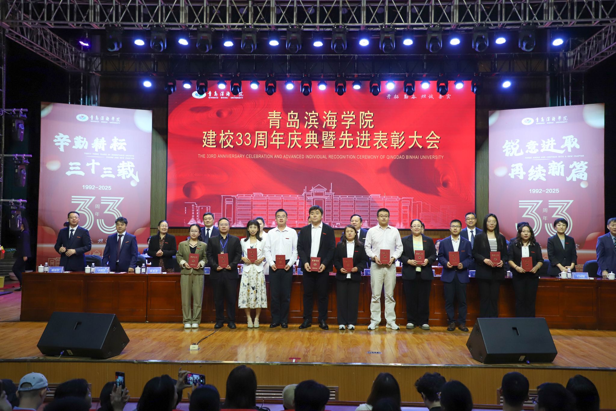 青岛滨海学院建校33周年庆典暨先进表彰大会于10月12日上午在小珠山校区大礼堂成功举行。