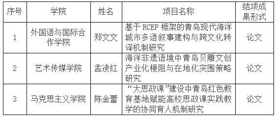 日前,中共青岛市委宣传部公布了2025年度青岛市哲学社会科学规划研究项目立项名单,我校有3项获批立项,具体名单如下: