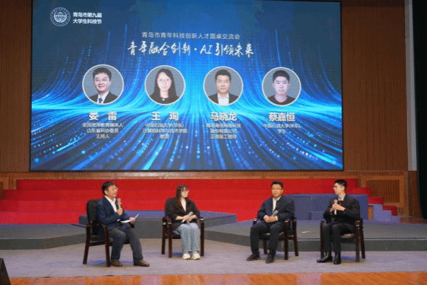 闭幕式上举办“青年融合创新·AI引领未来”圆桌交流会,全国资深教育媒体人、省科协委员、省科学家精神宣讲团专家娄雷、中国石油大学(华东)计算机科学与技术学院教授王珣、海信网络科技股份有限公司技术总监正高级工程师马晓龙、中国石油大学(华东)学生蔡嘉恒等四位嘉宾围绕人工智能发展展开深度对话。王珣教授指出,青年一代应当夯实理论基础,注重培养跨学科整合与批判性思维能力。马晓龙技术总监从产业需求角度分析,建议学生要着重培养“AI思维”,将人工智能作为方法论而非单纯工具,有效赋能本专业领域的创新实践。获奖学生代表蔡嘉恒结合其获奖项目,分享了AI技术在跨学科项目中的融合路径与实践体会,鼓励大家要勇于实践、注重协作,在科技创新中实现自我突破。与会嘉宾一致认为,要深入贯彻落实习近平总书记关于科技创新的重要论述,勇担科技自立自强时代使命,将青春智慧融入国家创新发展大局。