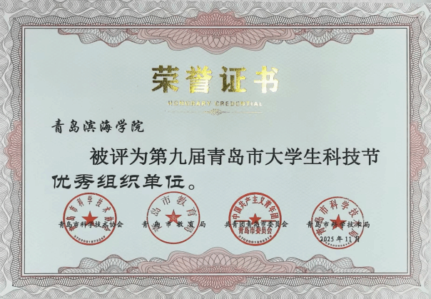 2025年11月26日,第九届青岛市大学生科技节闭幕式在青岛滨海学院举行。市科协党组成员、副主席柳本才出席并致辞。主办单位、各区(市)科协负责同志、驻青高校团委书记、获奖师生代表等600余人参加活动我校荣获优秀组织单位。