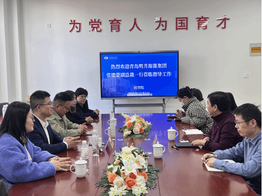 2025年12月5日,青岛明月海藻集团副总裁张德蒙率团队莅临我校,开展校企合作交流活动。双方围绕生物材料与临床医疗领域的深度协作,就进一步搭建高水平产教融合平台进行了深入探讨。我校医学创新研究团队相关博士教师参加交流。
