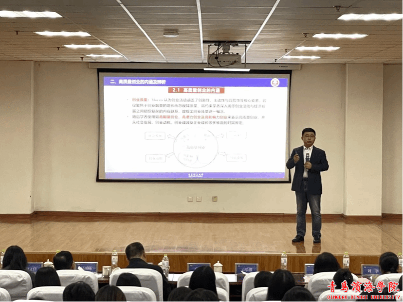 2025年10月15日,作为青岛滨海学院社科联成立十周年学术论坛系列活动之一,财经学院邀请青岛理工大学商学院院长、山东省泰山学者青年专家、硕士生导师云乐鑫教授在央图报告厅作以“新质生产力视域下高质量创业的内在逻辑和实现路径”为题的学术报告。