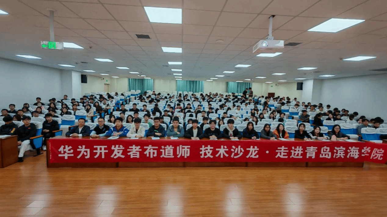 活动开幕阶段,主持人信息工程学院冯小洁副教授在致辞中讲道,华为技术有限公司是全球领先的信息与通信技术ICT)解决方案提供商,致力于把数字世界带入每个人、每个家庭、每个组织,构建万物互联的智能世界;华为持续推进全面智能化战略,通过人工智能领域的系列化创新,使能百模千态、赋能千行万业;为世界提供多样性算力,让云无处不在,让智能无所不及。信息工程学院与华为已建立了良好的合作,产教融合,共促ICT人才培养。教师积极参加华为公司举办的师资培训,申报华为-教育部产学合作协同育人项目、国产软件进课堂项目、华为云创计划、华为鸿蒙教师发展计划等项目,学生积极报名参加华为ICT大赛、华为云开发者大赛。2023年,学校引进华为云开发者创新中心-人工智能实训平台。学校已在多门专业课程中融入华为主导的国产软硬件核心技术。2024年,华为ICT学院-青岛滨海学院信息工程学院升级为认证级学院,并成为优秀毕业生推荐就业院校。2025年,学校与华为公司合作的项目获中国软件行业协会“国产软件进课堂”优秀教改项目金奖。这标志着学院与华为的产学合作又深了一层。
