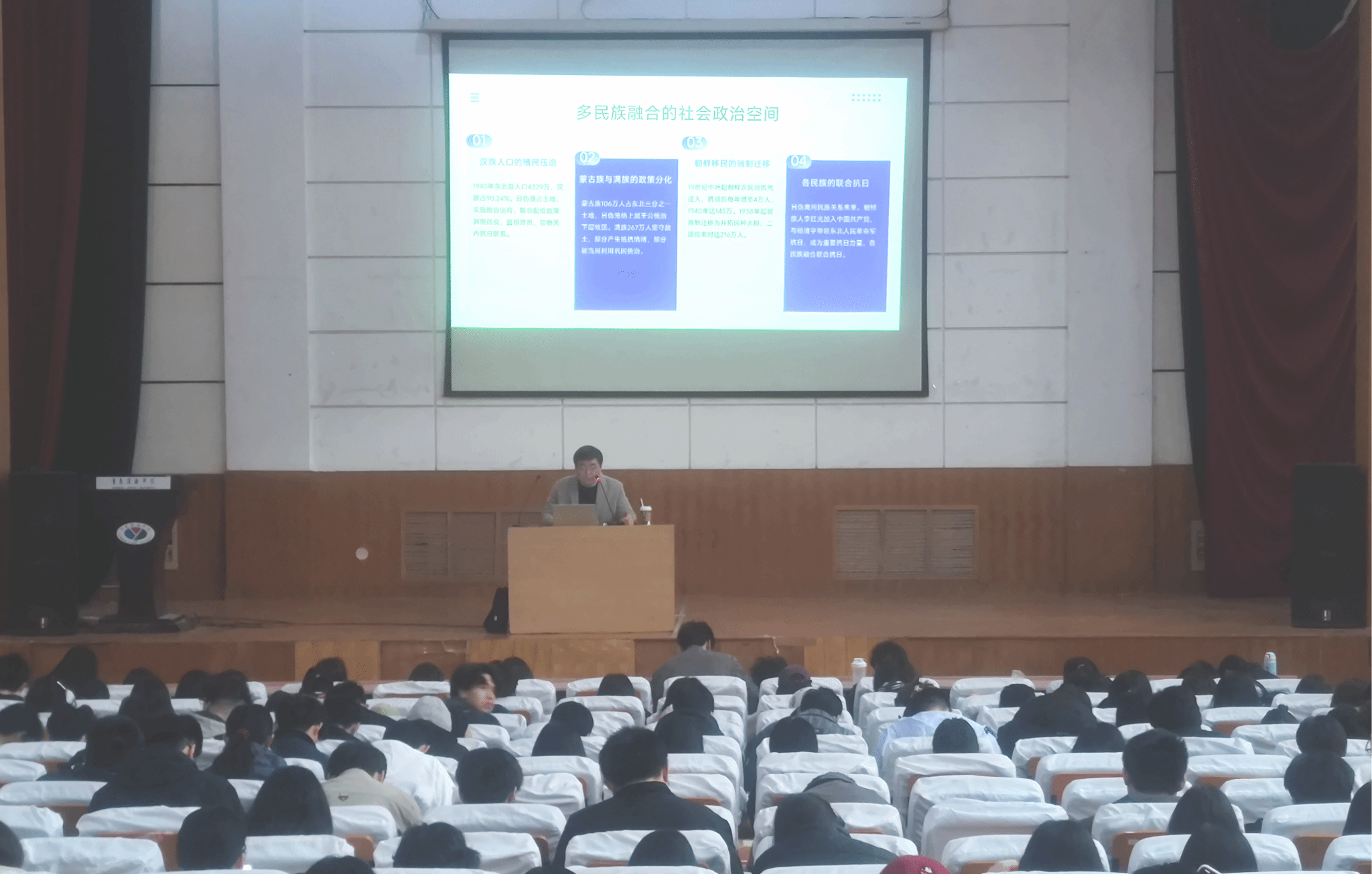2026年4月9日下午,青岛滨海学院科研处成功举办了小珠山校区“滨海讲坛”第三讲,由外国语与国际合作学院孟石峰老师主讲,主题为“抗战时期中韩文学共同体意识”,全校共有300余名同学参加了本次讲座。