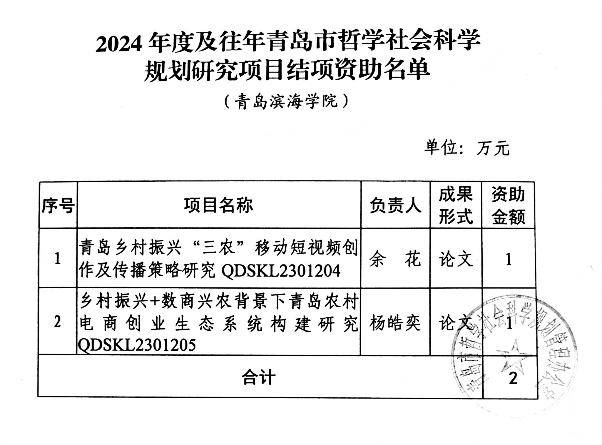 日前,青岛市哲学社会科学规划管理办公室对应结项项目组织开展鉴定,青岛滨海学院两项项目均以高质量成果顺利通过结项验收。